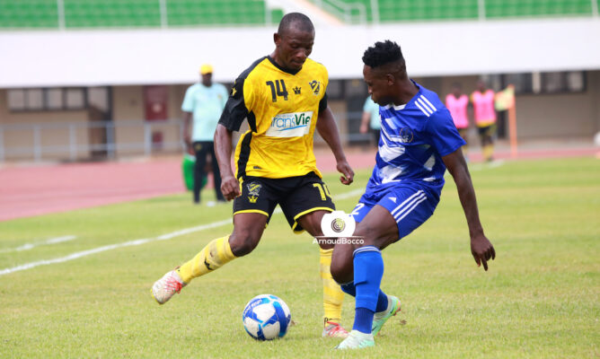 Les jaunes et noirs parviennent néanmoins à revenir au score dans les arrêts de jeu de la première partie grâce à une réalisation de Ouattara Moutalabou. Le score reste donc nul à la pause