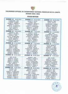 La nouvelle saison de D1 Lonato démarre le 22 octobre 2023. L’instance faîtière du sport roi nationale a rendu public le calendrier qui porte les différentes confrontations qui vont jalonner la saison 2023 – 2024.