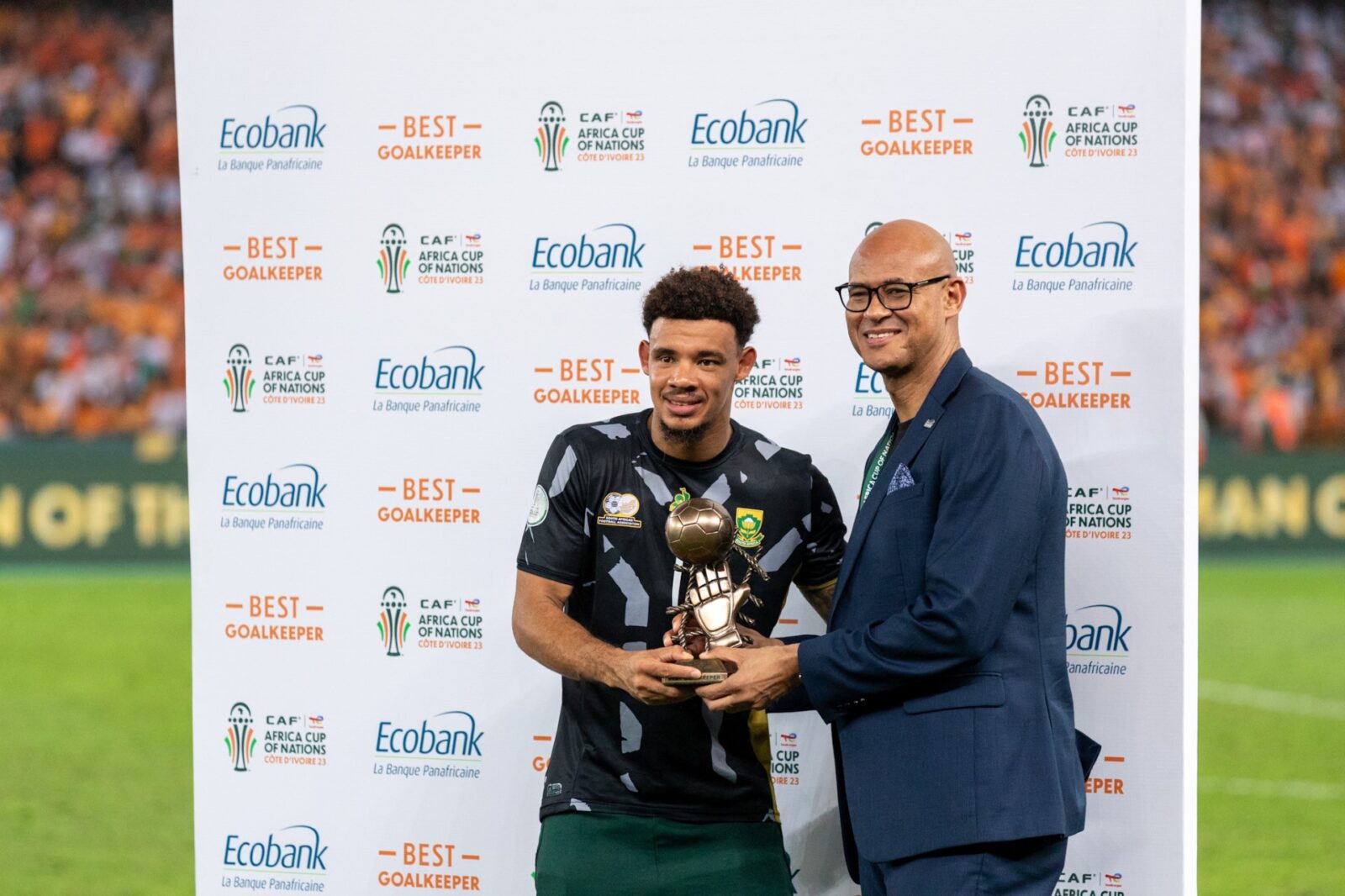 Jeremy Awori a eu l’honneur de remettre au gardien de but sud-africain Ronwen Williams le prestigieux trophée du Meilleur Gardien Ecobank décerné au meilleur gardien de but de la compétition. La performance remarquable de Williams, marquée par l’arrêt record de quatre penalties dans un seul match contre le Cap-Vert, a confirmé sa place dans l’histoire du football africain.