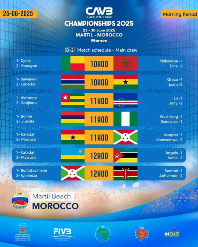 La Coupe Continentale Senior de Beachvolley démarre pour le Togo, déjà le 25 juin 2025. Dans le groupe A, les dames se mesurent au Cap-Vert, à 11h, pendant que les Hommes seront toujours en observation.
