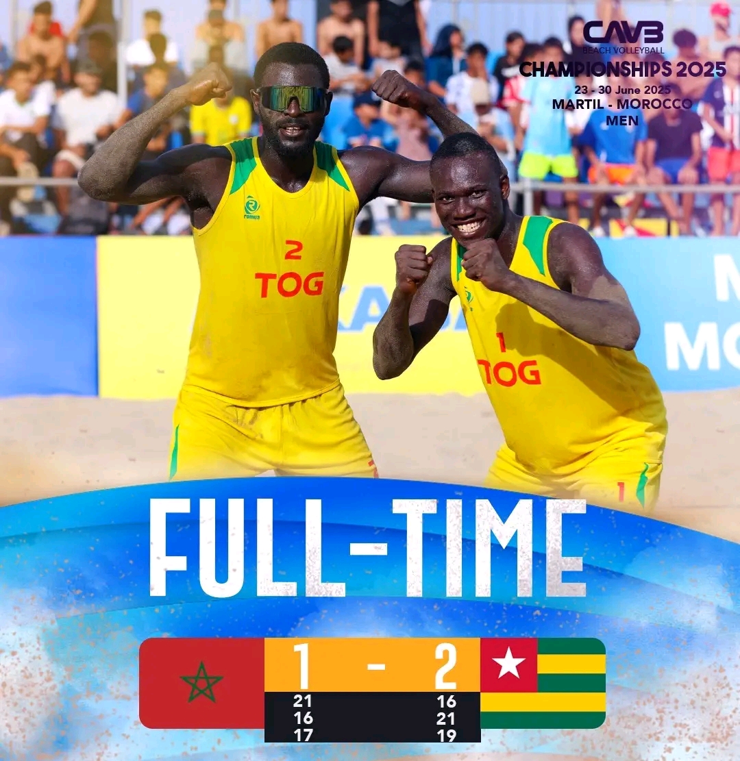 Le succès du Togo face au Maroc, une équipe expérimentée et titrée confirme la montée en puissance du beach-volley togolais sur la scène continentale.